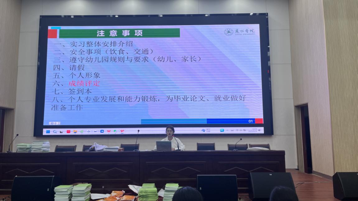 为帮助学前教育专业毕业生做好实习前的充分准备,明晰实习要求与成长方向。近日,我院松阳校区隆重召开学前教育实习动员大会。全体带队教师出和24级专升本学生出席会议。