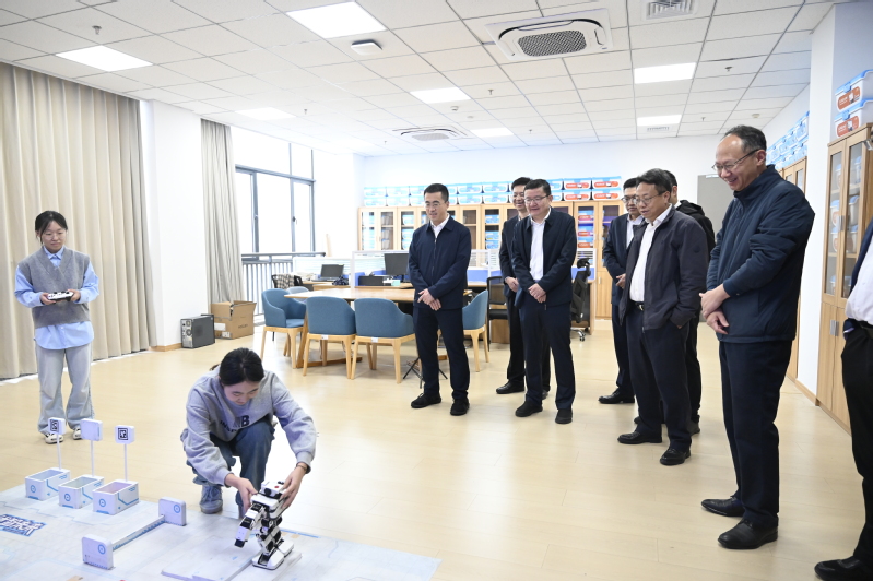 11月6日上午,市委常委、莲都区委书记于会游一行来我院参观人工智能与未来教育创新实验室,校党委书记李俊杰等领导同行。潘巧明院长向他们详细介绍了实验室的应用实践、研究方向与未来发展规划,并带领他们现场考察AI技术在教育场景中的应用实践,包括智能教学系统、个性化学习平台、教育数据分析等内容。