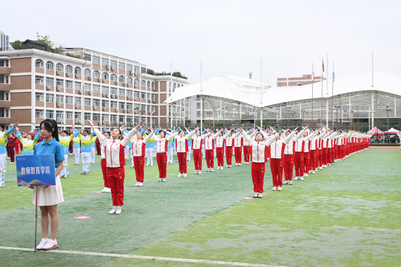 在广播体操比赛中,我院学子动作流畅规范,伸展、踢腿、转身整齐有力,充分展现了青春活力与平日刻苦训练、精益求精所铸就的卓越风采。