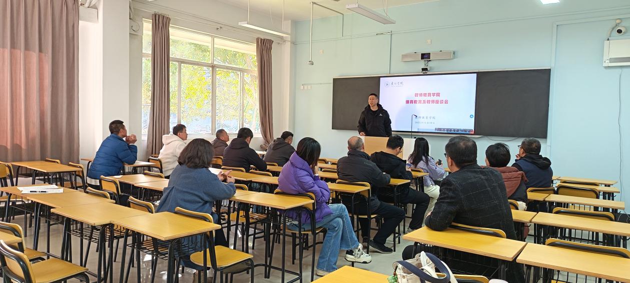 为持续加强教学过程监控,切实提高人才培养质量,近日,体育系分别组织召开了期中教学检查教师座谈会与学生座谈会。系部主任、各科室负责人、体育教育专业负责人以及35名师生代表共同参加了会议。