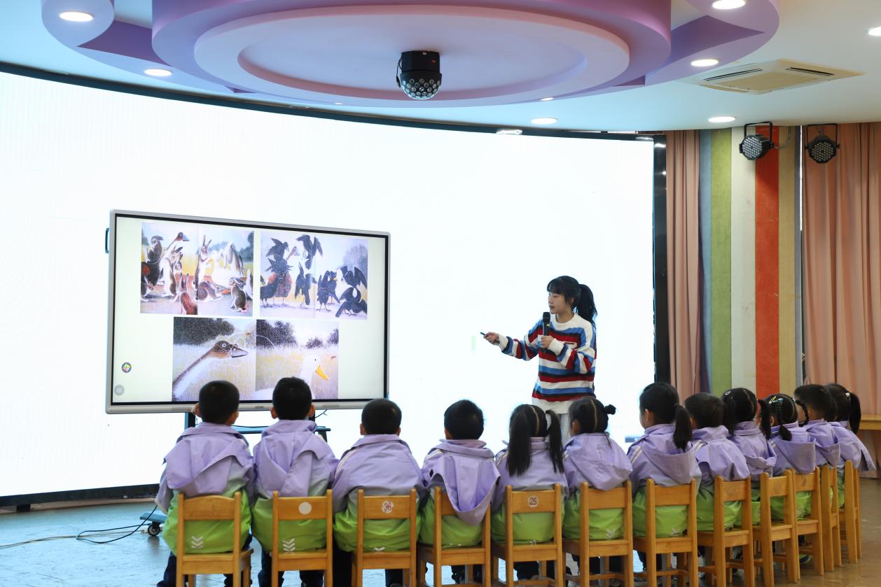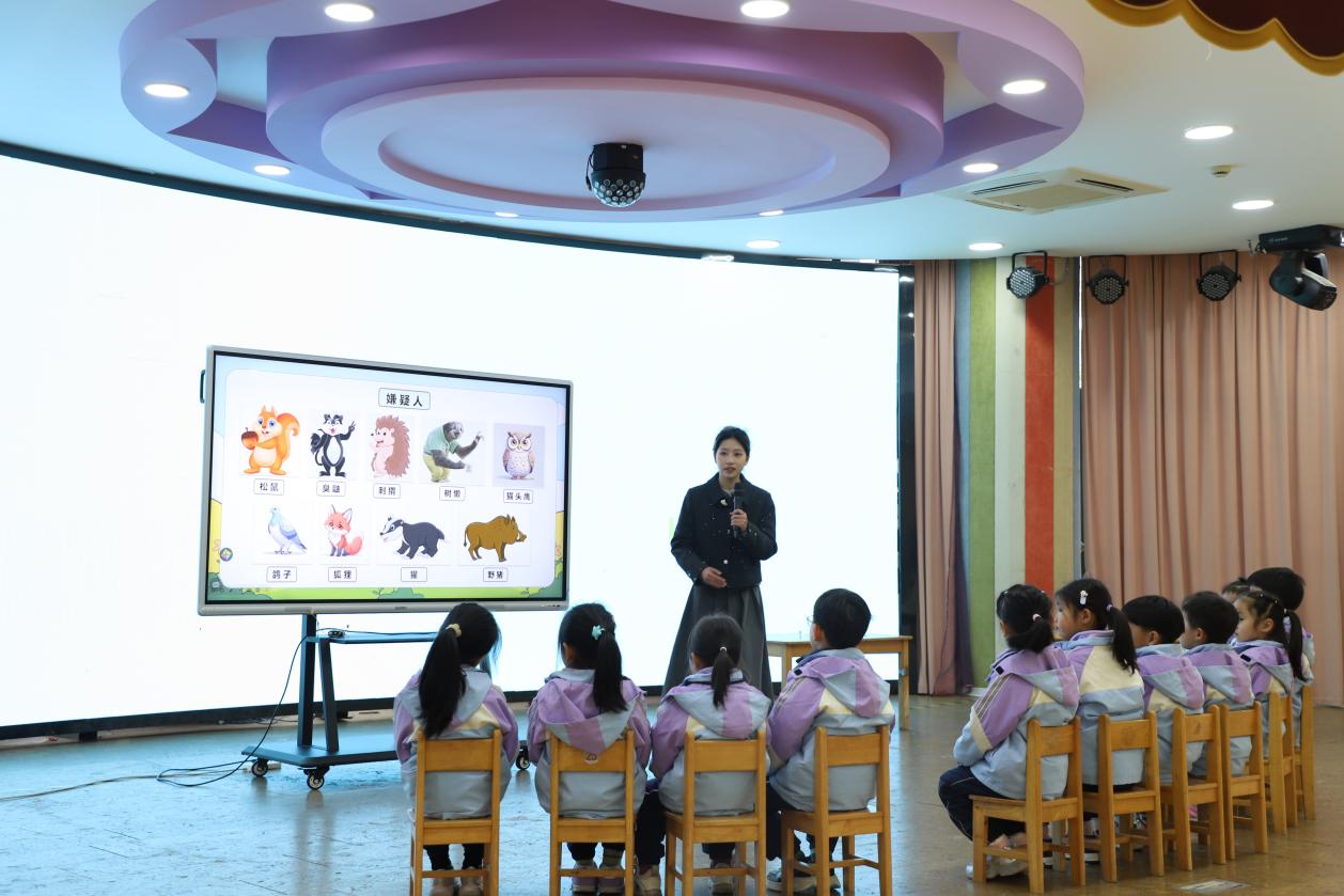 本次活动以“亮课堂·展风采·共成长”为核心主题,分为教学活动展示、课后互动点评与实习总结会三大环节。参与本次汇报课展示的四位实习老师在自主报名的基础上由各年段层层推选产生。每位实习老师都在结对带教指导老师的帮助下,确定执教内容,反复试教,不断优化活动方案,努力设计出扎实合理的活动计划。叶嘉、徐梦茹、苏晗、廖文彦四位实习老师分别为大家呈现了大班语言活动《一根羽毛也不能动》、中班语言活动《谁是嫌疑人》、大班科学活动《动物城破案》和小班语言活动《我的门》。每堂展示课都充分展现了实习生扎实的专业基础与灵活的教学应变能力,赢得了现场师生的一致好评。