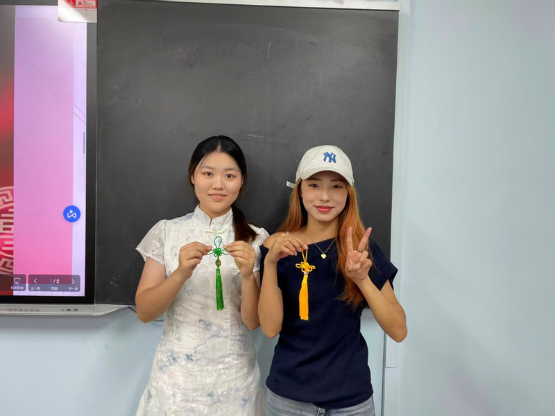 活动现场,志愿者通过“分步示范”与“要点口诀”相结合的方式,细致讲授盘长结、双钱结等经典结型的编织技法,并穿梭于学员之间进行一对一指导,及时纠正操作手势。志愿者还结合实物样品,为同学们解读了绳结文化中“同心同德”“吉祥如意”等美好寓意,深化了大家对中国结文化内涵的理解。