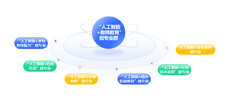 为深入实施“人工智能+”行动,推动人工智能与教师教育深度融合,加快推进数字化资源建设与优质教学资源共建共享,我院立足已有基础,依托国家级一流课程支撑,持续深化改革,迈出关键步伐,一次性推出《人工智能+未来教师》《人工智能+社区托育》《人工智能+心理技术应用》等六个“人工智能 +”微专业。其中联合青海民族大学全国首开《人工智能+乡村教育振兴》微专业,已获教育部首批高校学生就业能力提升“双千”计划备案入库。学院已经全面升级35门“人工智能 +”课程,推出全国首个“人工智能+教师教育”微专业群,聚焦国家战略与市场需求的微专业模块。