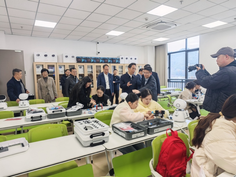 12月19日,丽水市委书记吴舜泽来我校宣讲党的二十届四中全会精神期间。考察了我院“人工智能与未来教育创新实验室”,深入了解实验室在教育科技创新与人才培养方面的最新成果与发展情况。