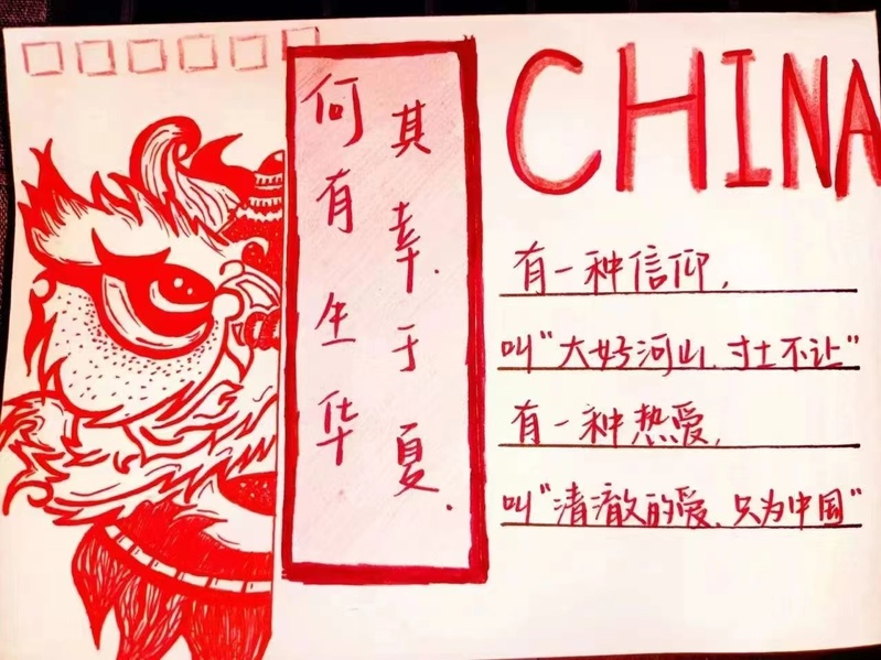 活动现场,学生们精心构思、巧手创作。鲜红的五星、雄伟的天安门、奔腾的黄河等元素跃然纸上,部分作品还搭配了“国泰民安”“山河无恙”等真挚文字,将对祖国和平发展的美好期许融入每一笔色彩。同学们相互交流创作思路,分享对祖国发展成就的感悟,现场氛围热烈而温馨。