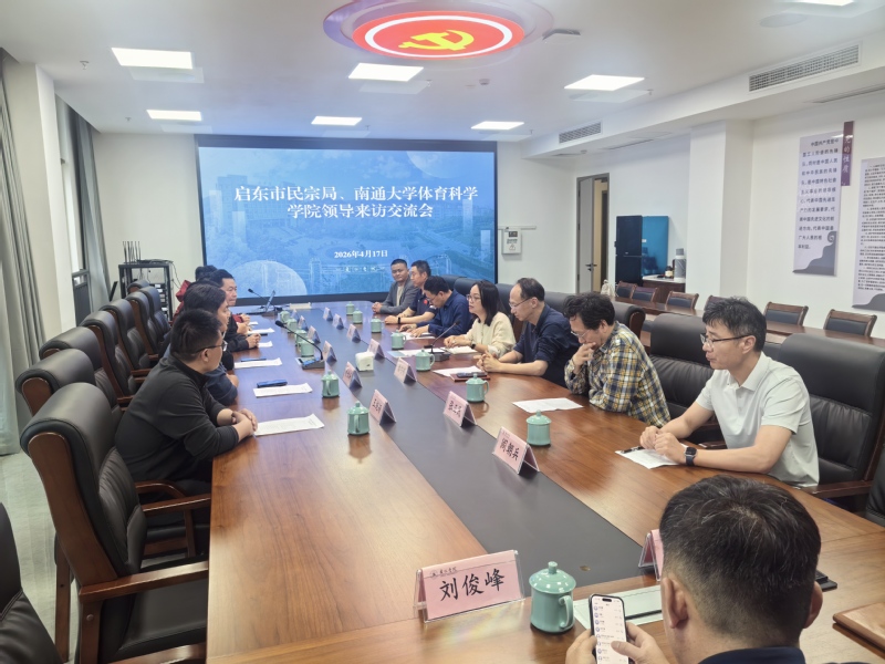 4月17日下午,江苏省启东市委统战部副部长、市民宗局局长刘锦华,南通大学体育科学学院院长娄虎一行来我院开展调研交流。院长潘巧明主持会议,校党委统战部常务副部长陈轶,教师教育学院副院长张艳超及体育学科相关负责人参加座谈。
