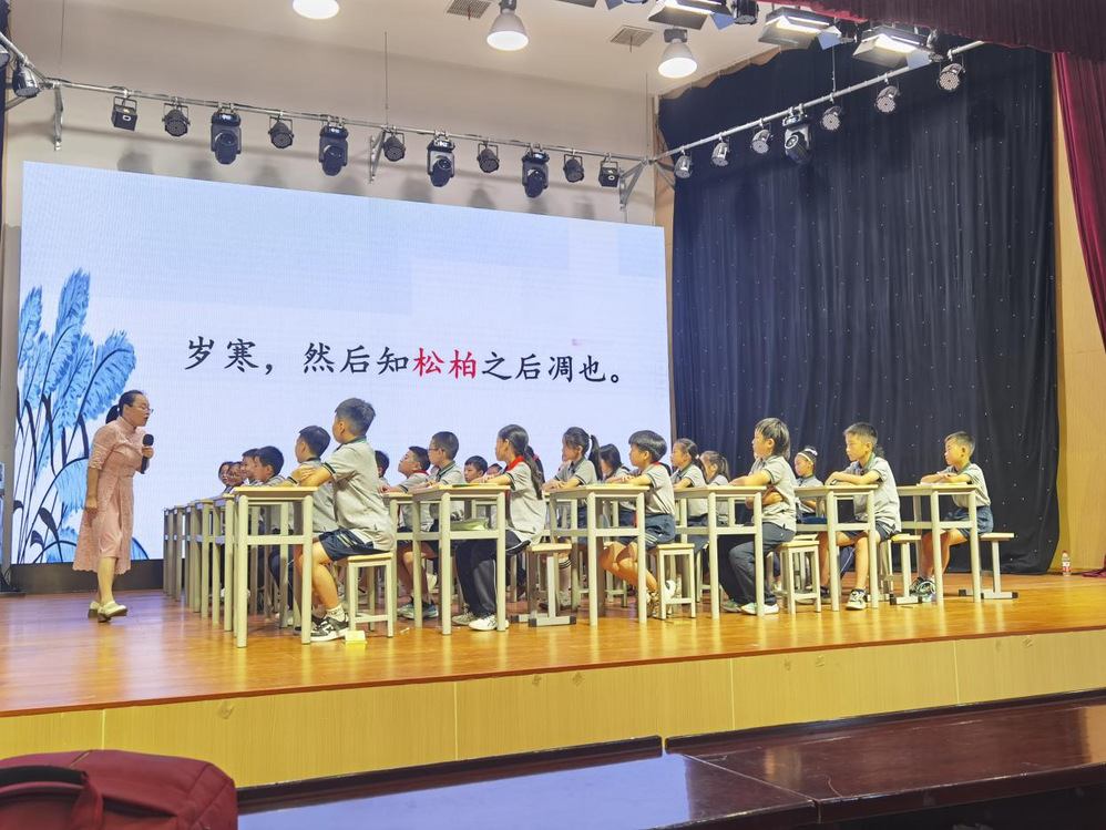 本次活动的第二大亮点是项目安排丰富多元,紧扣小学语文教育与中华优秀传统文化。7月6日,组织学生参加了由教育部基础教育教学指导委员会语文专委会委员詹艾斌教授的主题讲座“小学语文教学与中华优秀传统文化教育”,从不同维度为语文教学注入传统文化活力。7月7日,又参加了华东交通大学附属学校副校长邓锦芸带来观摩课与专题分享。在小学语文教育中,也可以引入国子监官韻诵唸的方法来读经典。国子监官韻诵唸有固定的韵律、节奏和声调,朗朗上口的韵律和生动的语调可以让学生生动地进行学习,加强小学生的语言感知力和记忆力,使原本枯燥的古文不再难记。除此之外,学习国子监官韻诵唸还可以培养小学生对经典的敬畏之情和中正平和的心性。